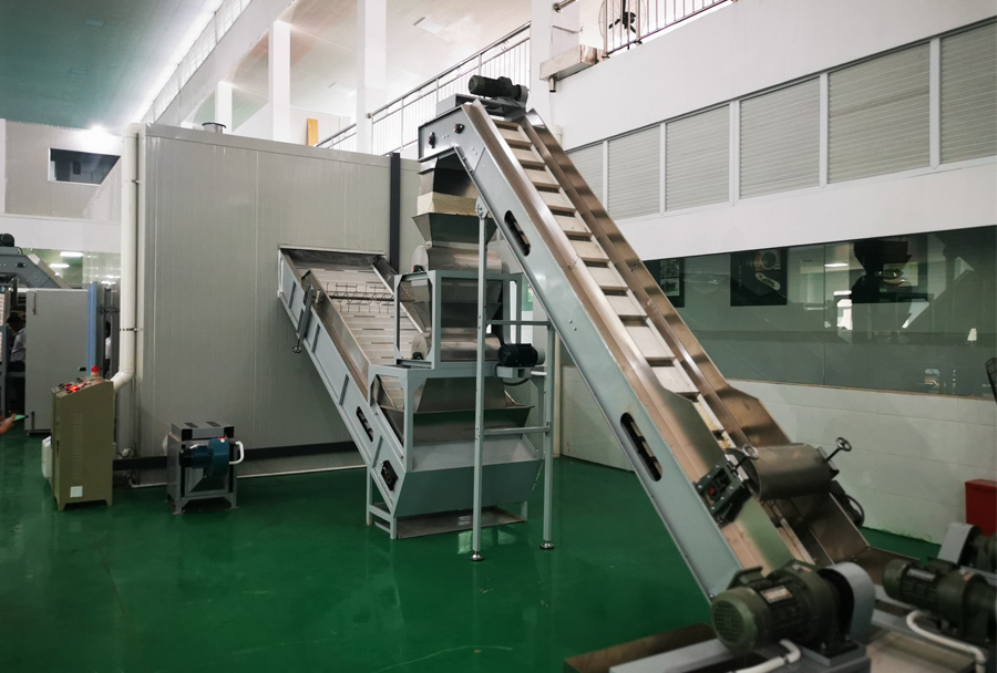 作業(yè)原理:連續(xù)發(fā)酵機(jī)可在發(fā)酵過程中實(shí)現(xiàn)供氧、換氣、加溫、增濕等功能,科學(xué)布局溫、濕度管道保證相對恒定的發(fā)酵環(huán)境,連續(xù)發(fā)酵機(jī)主機(jī)置于發(fā)酵箱體(房)內(nèi),設(shè)置多層輸送網(wǎng)帶,揉捻葉達(dá)到發(fā)酵要求后,自動(dòng)流出到下個(gè)環(huán)節(jié)。